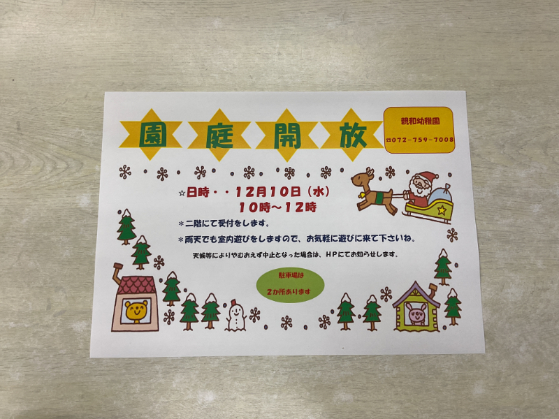 12月の園庭開放は12月10日( 水)に1回になります!