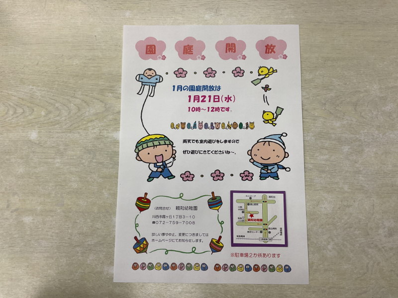 1月の園庭開放は1月21日(水)の1回の開催になります。